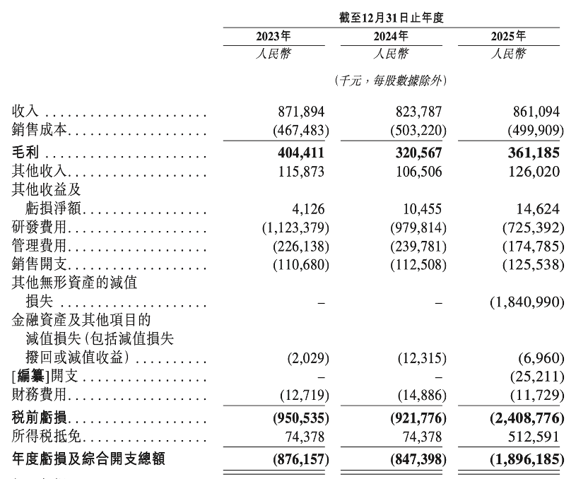 招股书披露的财务数据显示,斑马智行营收规模稳中有升,2023年实现收入8.72亿元;2024年略有回落至8.24亿元,同比下降5.5%;2025年回升至8.61亿元,同比增长4.5%。